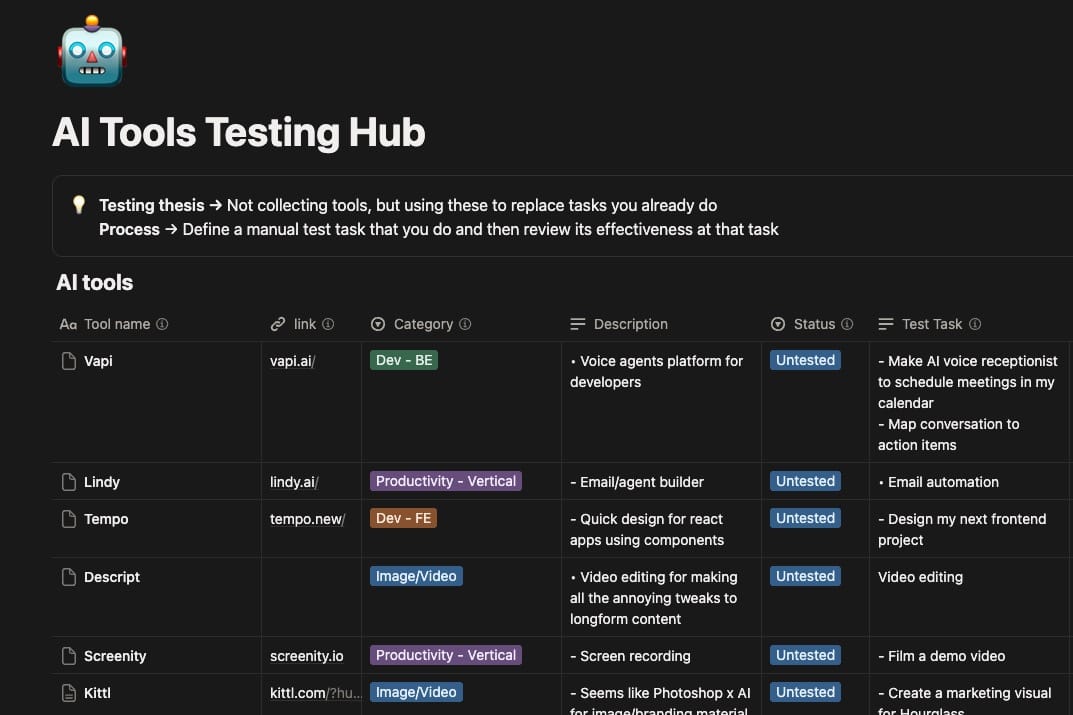 We released a public database of all the new AI products we come across, and our notes from testing them. Access it here.